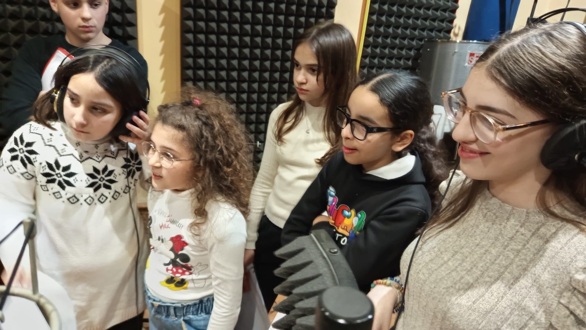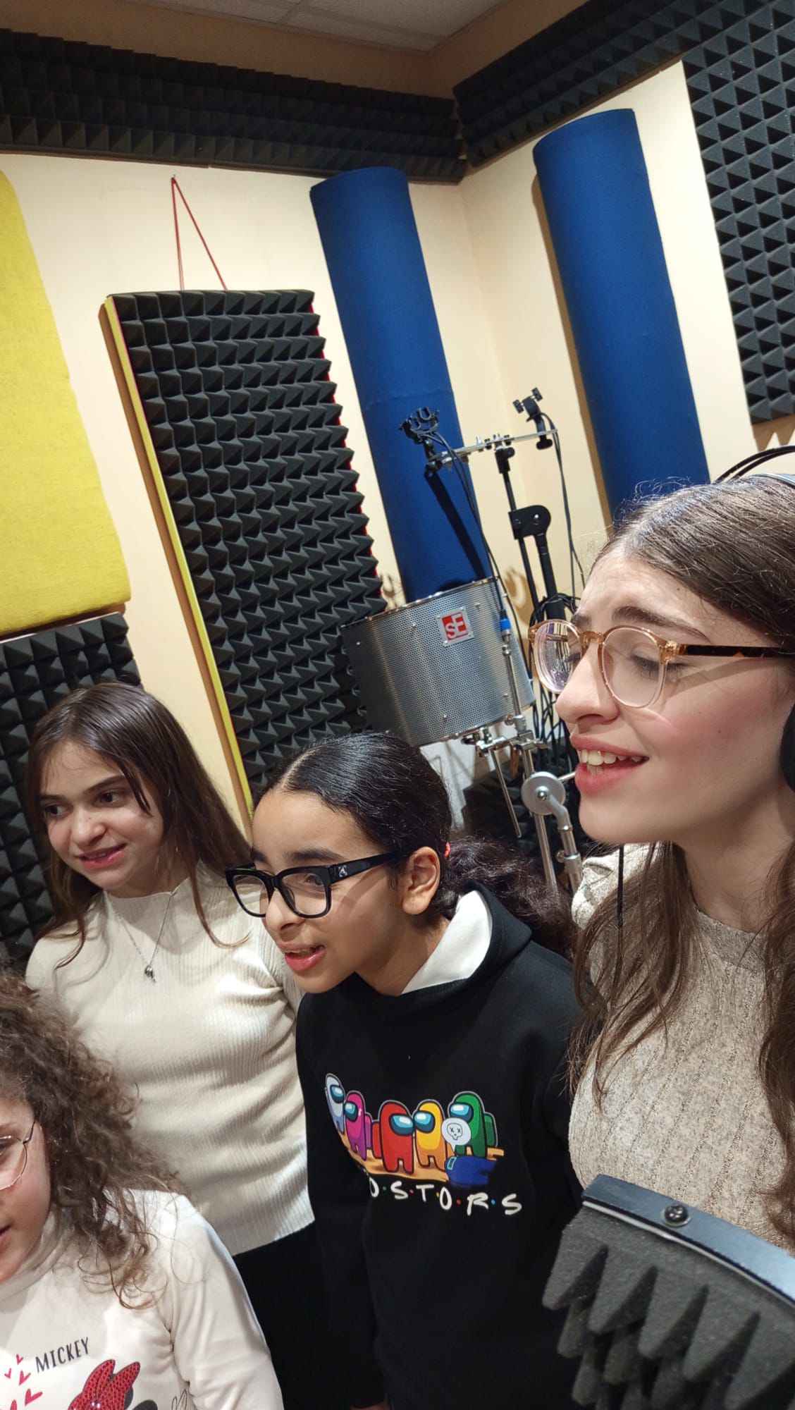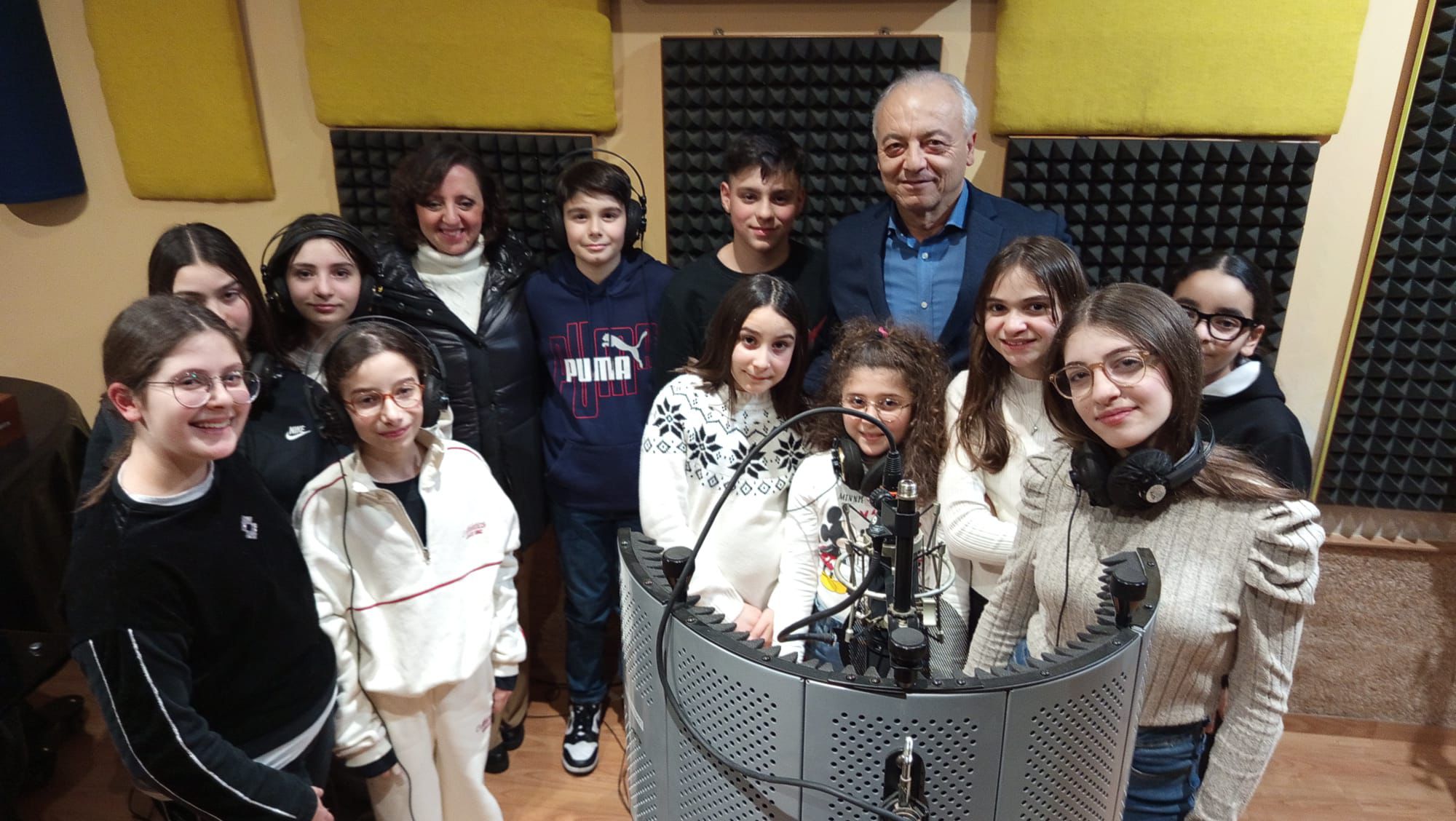 Oggi si è svolto nel plesso della scuola secondaria di I grado, un incontro organizzativo con i genitori e poi il coro si è recato nello studio Amarcord di Marigliano per la registrazione e l’incisione della canzone.