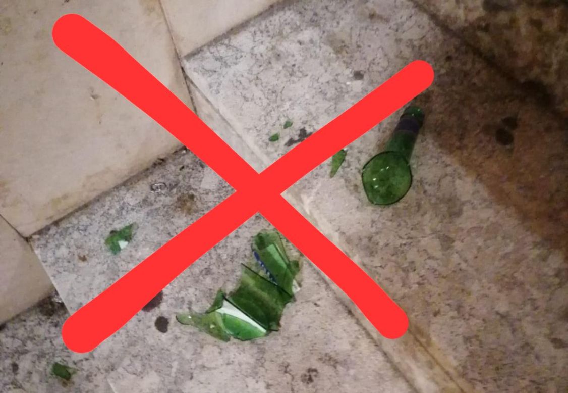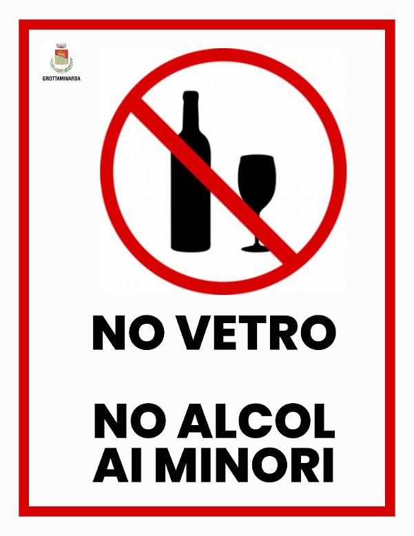 • È vietato, a chiunque, introdurre bevande in contenitori di vetro di qualsiasi genere (bottiglie, bicchieri, ecc) per il consumo delle stesse su aree pubbliche.