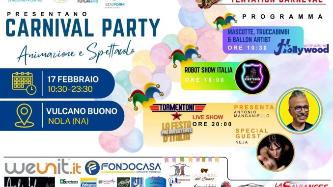 Manca poco alla festa più pazza  di carnevale  organizzata da Giacomo Notaro, in arte Jack, che quest’anno trionferà al centro Vulcano Buono di Nola.