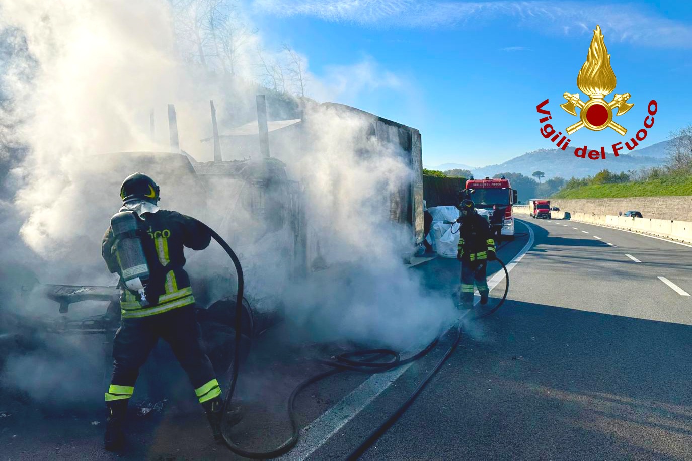 Questa mattina, 25 novembre, intorno alle ore 10:30, i Vigili del Fuoco di Avellino sono intervenuti sull’Autostrada A16 Napoli-Canosa, al km 53,800 in direzione Canosa, nel territorio del comune di Manocalzati, per un incendio che ha coinvolto un furgone in transito, utilizzato per il trasporto di divani.