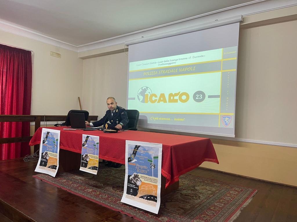 Gli agenti della Polizia Stradale di Fuorigrotta hanno incontrato gli studenti del Liceo Classico e delle Scienze Umane “F. Durante” di Frattamaggiore (Na) per discutere di sicurezza stradale in relazione ai temi del progetto “Icaro 23”.