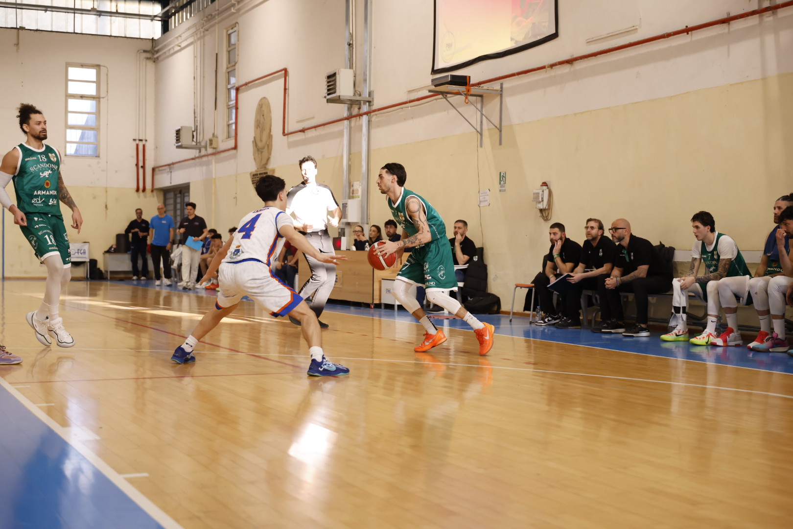 Il playmaker Matera dà qualità all’attacco, mentre la Scandone accusa il colpo. Coach Dell’Imperio chiama time-out per riordinare un attacco confusionario.