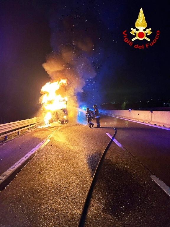 La squadra dei Vigili del distaccamento di Grottaminarda subito dopo le ore 03’30 della notte trascorsa, sono intervenuti sull’autostrada A 16, Napoli – Canosa in direzione Canosa, al Km. 86,400 nel territorio del comune di Grottaminarda per un incendio che ha visto coinvolto un autocarro in transito che trasportava profilati in alluminio. Le fiamme che hanno avvolto il pesante automezzo proveniente da Roma e diretto a Bari sono state spente mettendo in sicurezza il veicolo. La Polizia Stradale ha regolato la viabilità che ha subito dei rallentamenti durante le operazioni di soccorso.