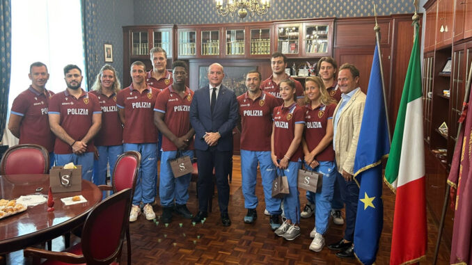 Ieri mattina, gli atleti delle Fiamme Oro Napoli, accompagnati dal Coordinatore del locale Centro Nazionale, Isp. Capo Luca Piscopo, dal Direttore Tecnico settore Judo V. Sov. Giuseppe Maddaloni e dai Tecnici Luigi Ganino settore Windsurfing e Beach Volley, Andrea Volpini settore Nuoto ed Enrico Parlati settore Judo e Ginnastica, hanno incontrato il Questore di Napoli, Dott. Maurizio Agricola, che, per l’occasione, ha donato loro una fiammella, realizzata a mano, che riporta il volto stilizzato della maschera di Pulcinella.
