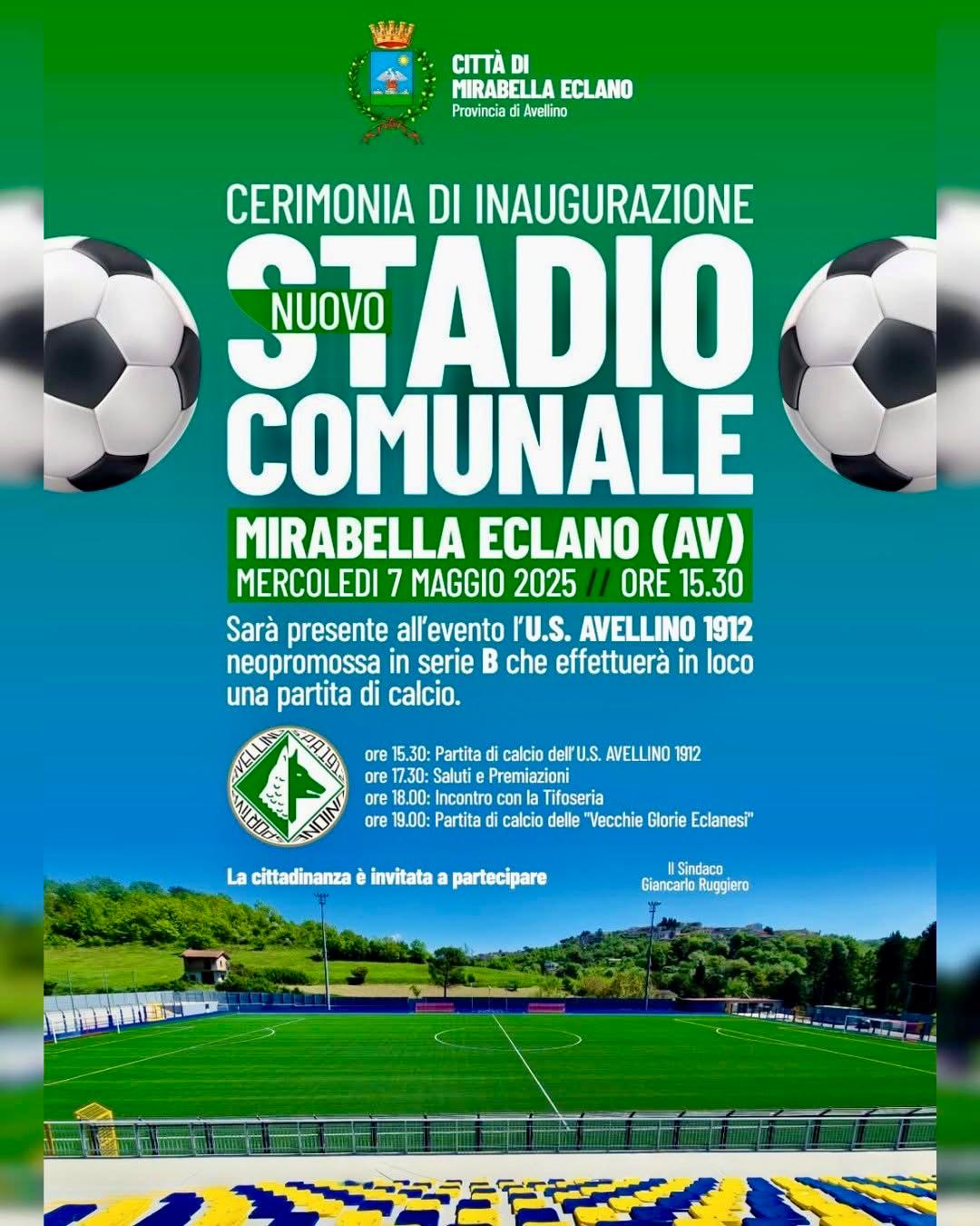 Una giornata davvero speciale quella che ha visto Mirabella Eclano protagonista, in un connubio perfetto tra memoria e futuro, sport e comunità. L’inaugurazione del nuovo stadio comunale è stata ben più di un evento simbolico: è stata una vera e propria celebrazione dell’identità di un paese che guarda al calcio con una passione senza pari e che oggi si ritrova a vedere rinnovato il proprio legame con l’Avellino, tornato a brillare in Serie B.