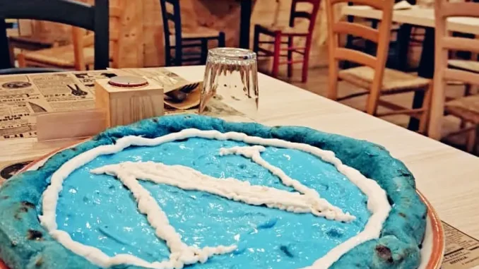 Non poteva mancare La pizza “azzurra” dedicata alla SSC Napoli di Giuseppe Ordegno di Monteforte Irpino, che gestisce la pizzeria Naples Pizza & More. Una gustosa e scenografica pizza “azzurra” per celebrare gli ottimi risultati della Società Sportiva Calcio Napoli.