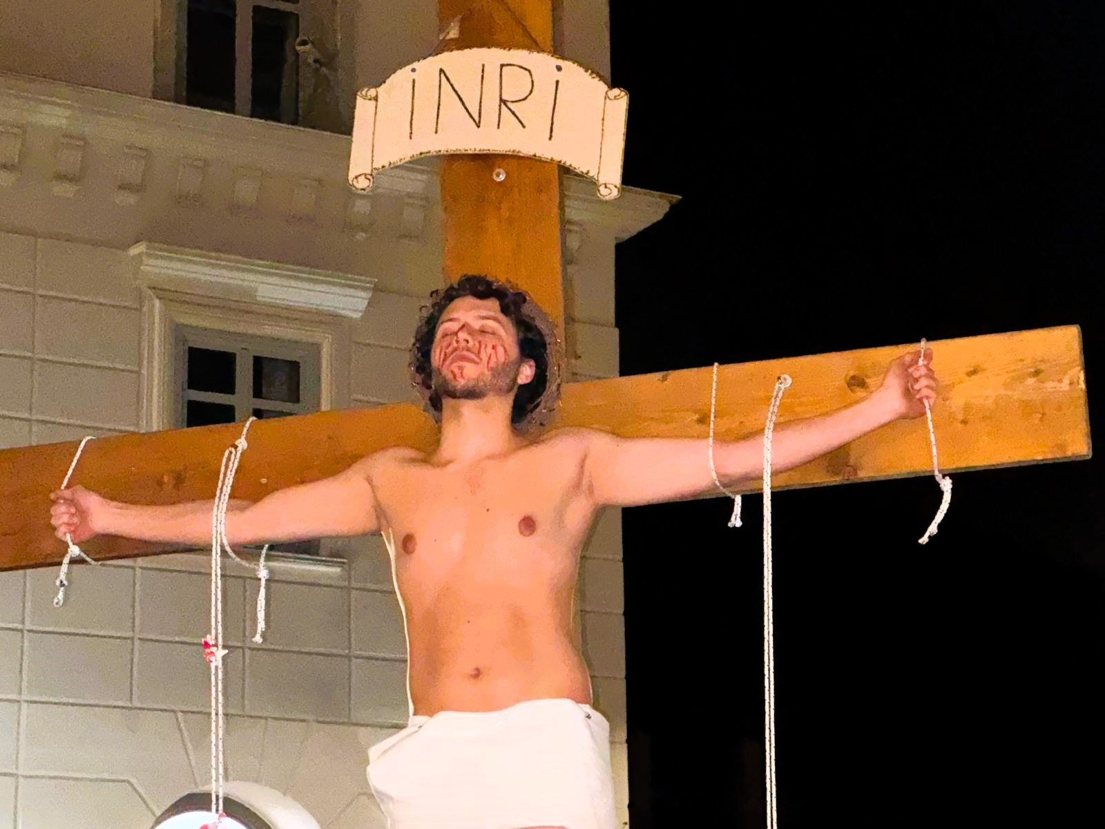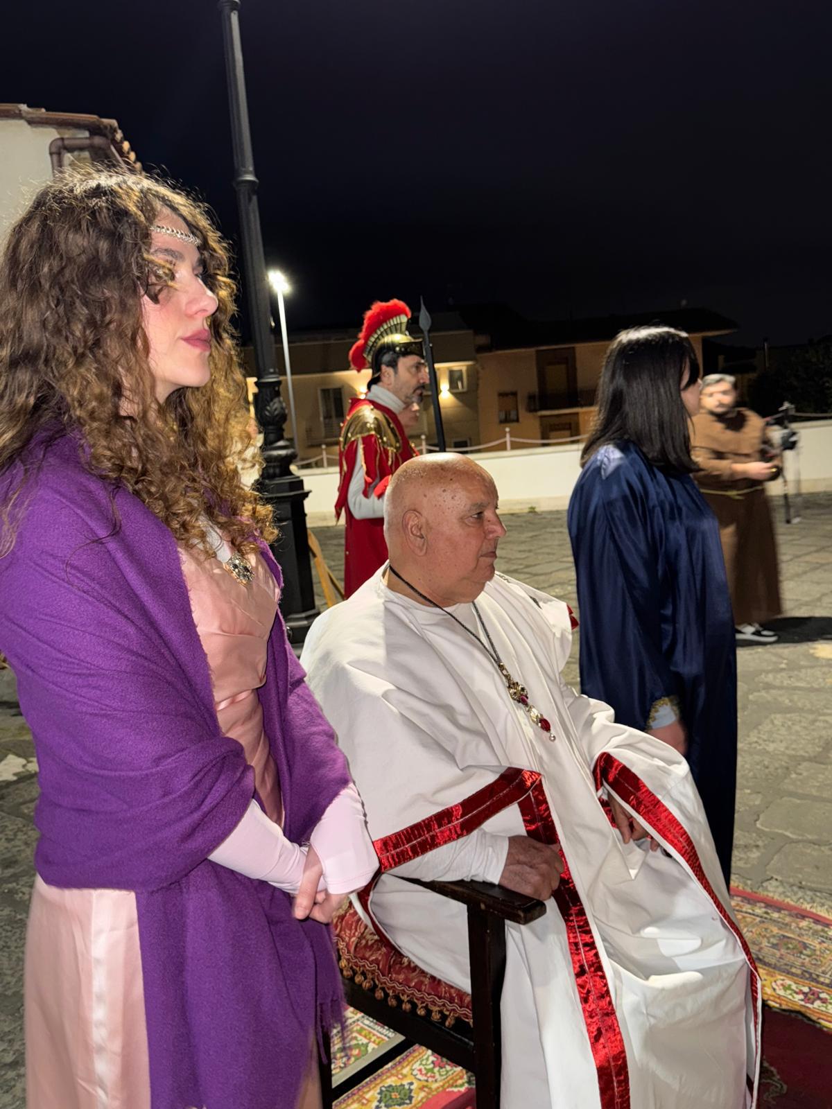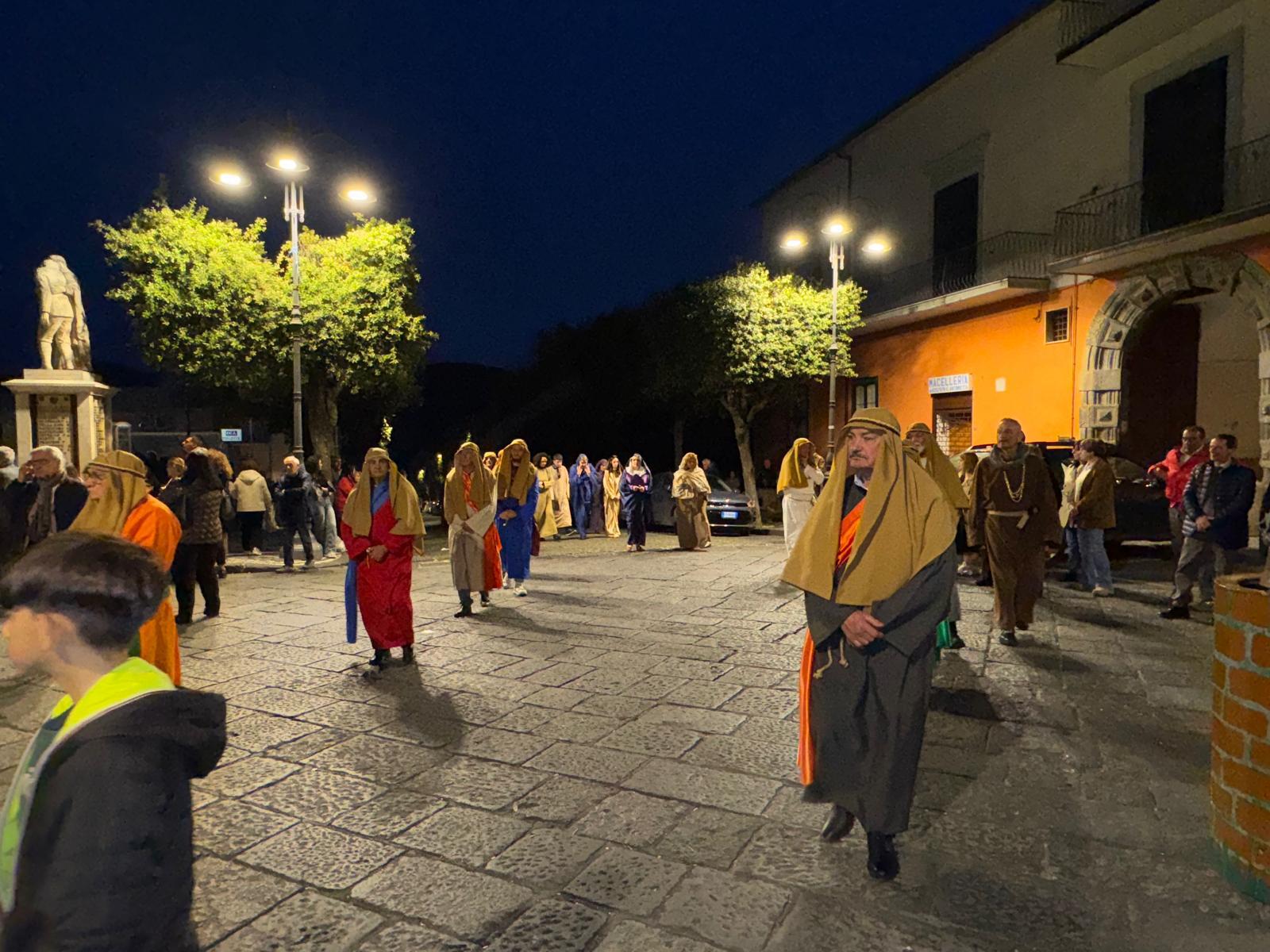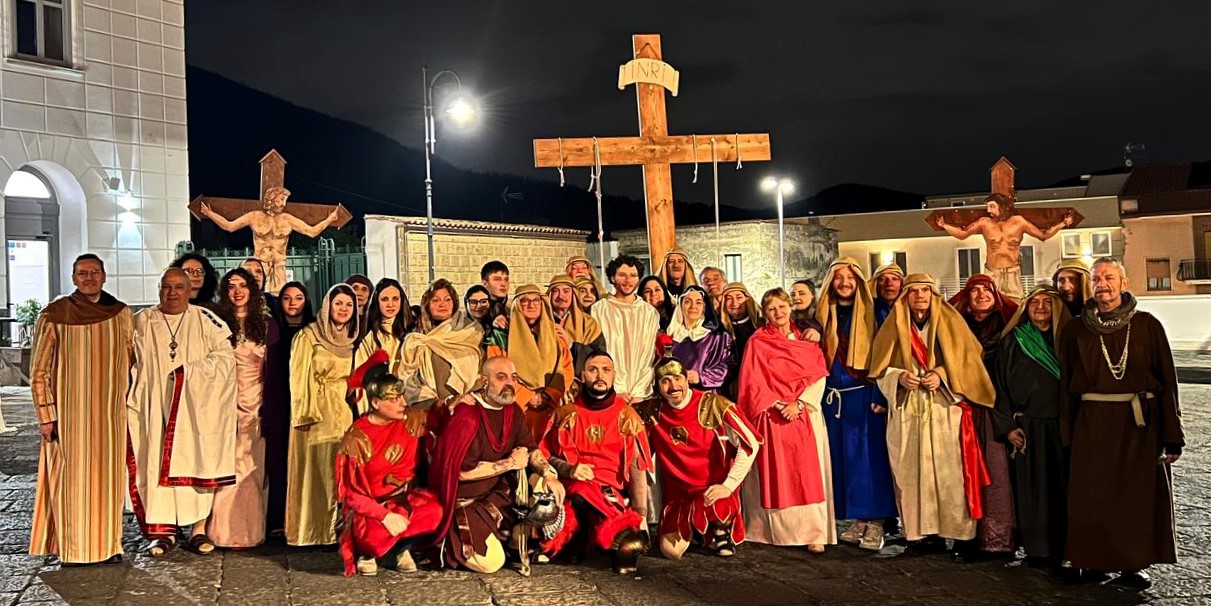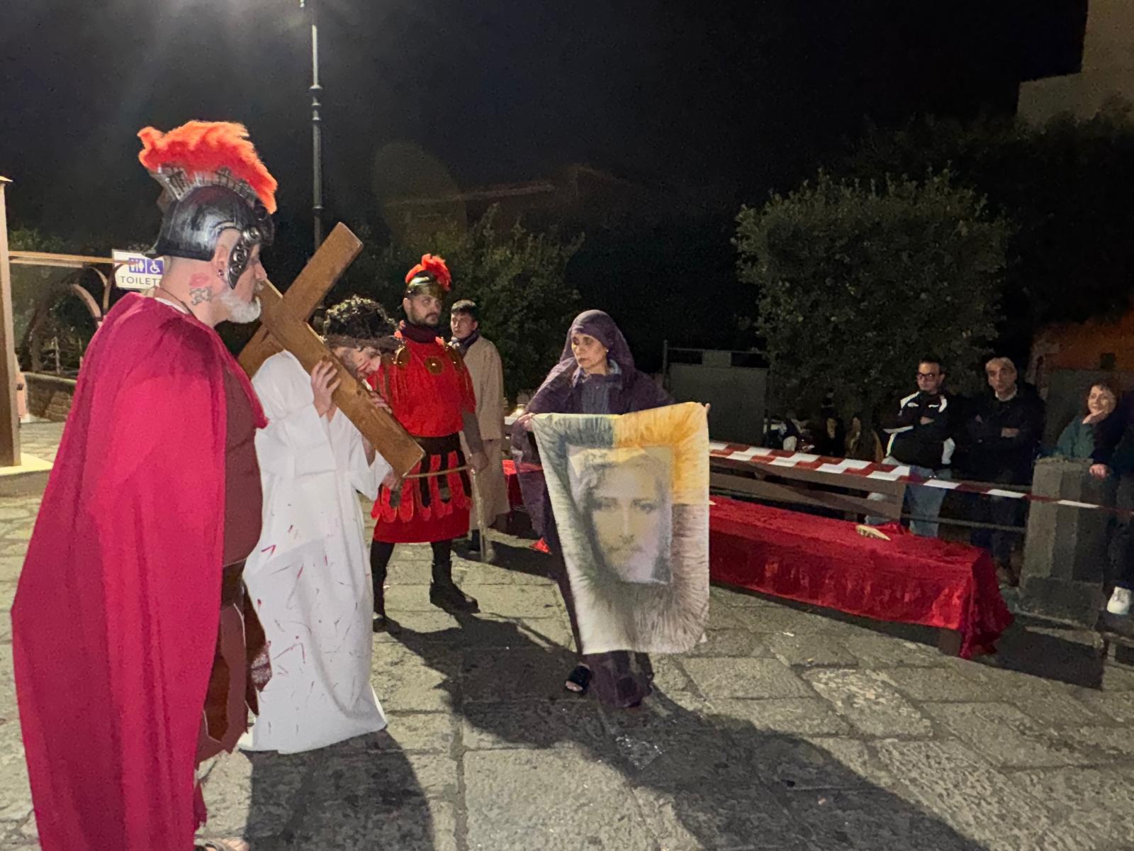 La piazza si è trasformata in un vero teatro a cielo aperto, dove le stazioni della Passione di Cristo sono state rappresentate attraverso quadri viventi, letture evangeliche e musiche sacre che hanno guidato i fedeli lungo il percorso simbolico del Calvario. Ogni scena, curata nei minimi dettagli, ha saputo toccare le corde dell’anima, emozionando i presenti e rendendo viva la memoria del sacrificio di Cristo.