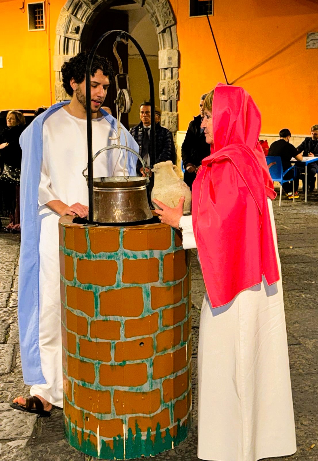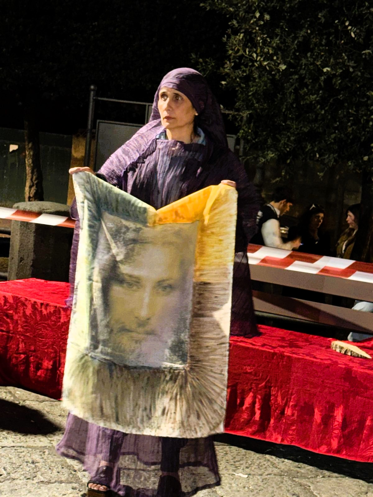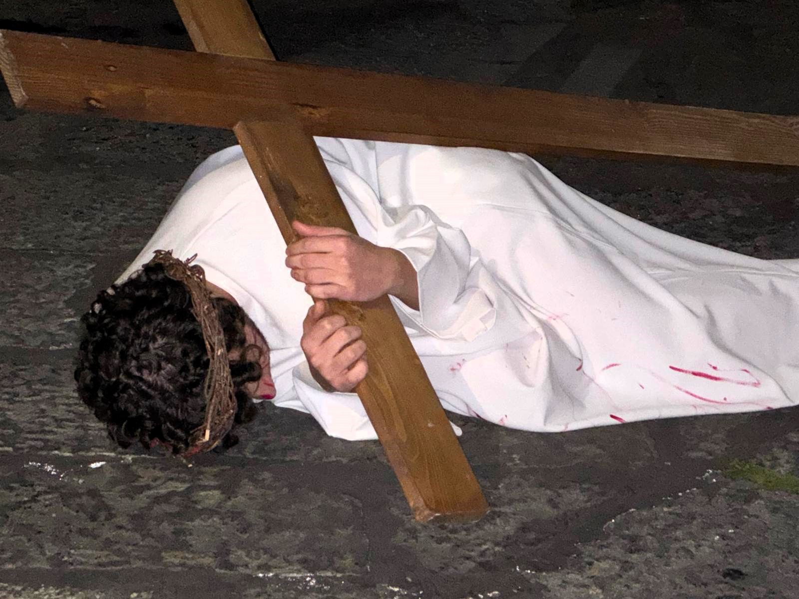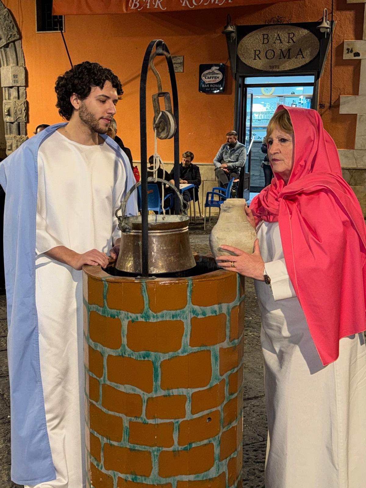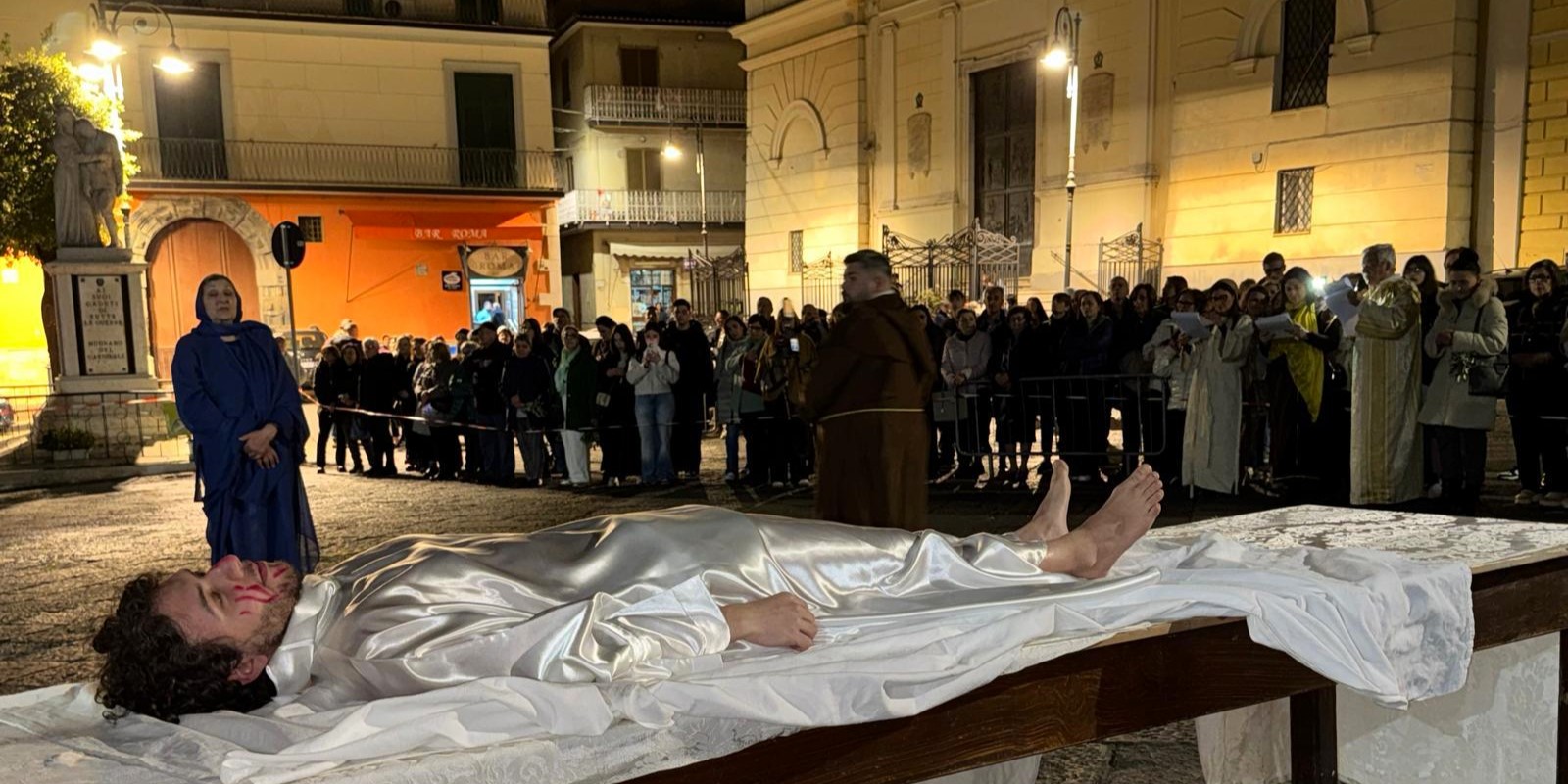 La piazza si è trasformata in un vero teatro a cielo aperto, dove le stazioni della Passione di Cristo sono state rappresentate attraverso quadri viventi, letture evangeliche e musiche sacre che hanno guidato i fedeli lungo il percorso simbolico del Calvario. Ogni scena, curata nei minimi dettagli, ha saputo toccare le corde dell’anima, emozionando i presenti e rendendo viva la memoria del sacrificio di Cristo.