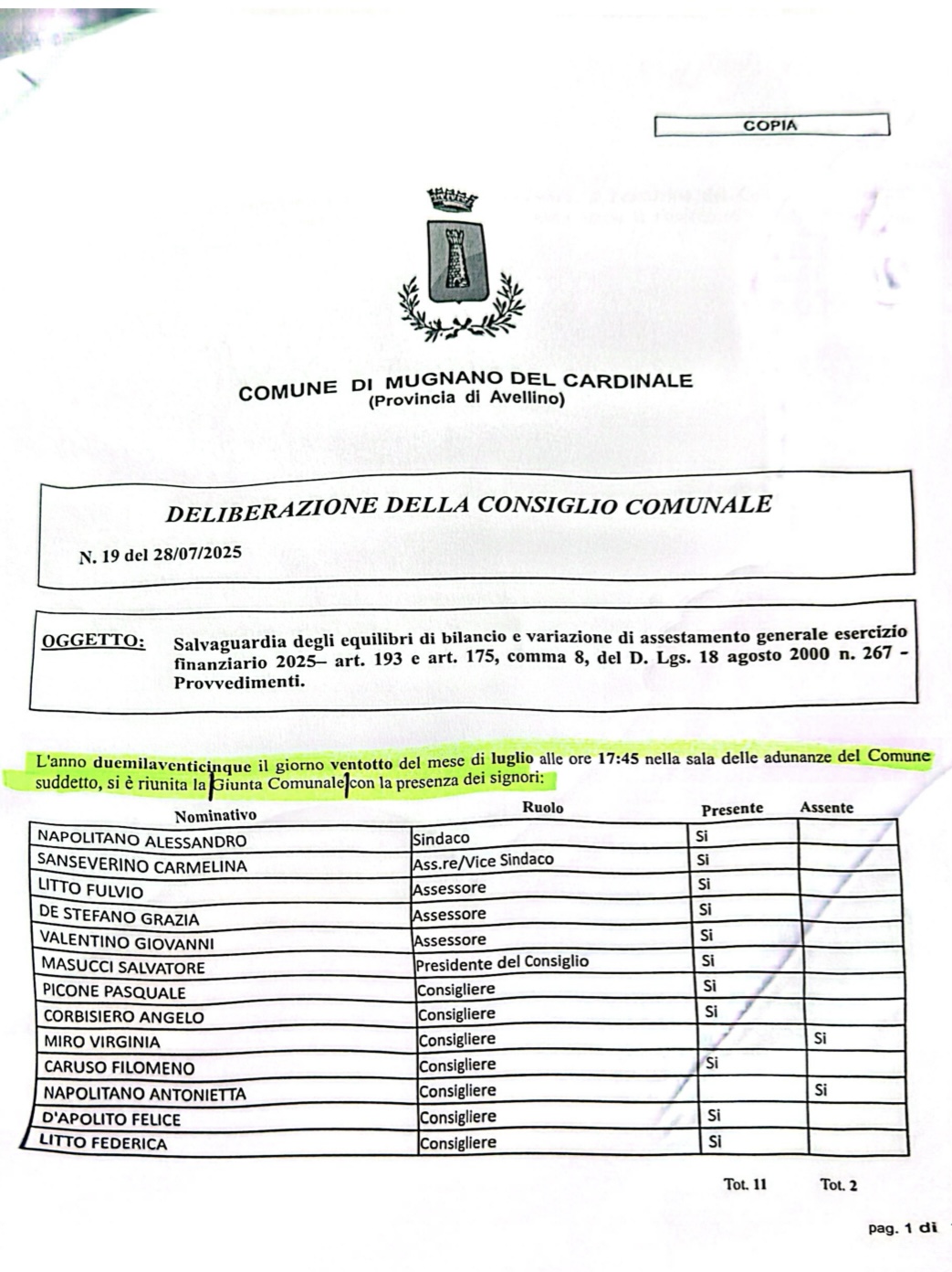 Per questi motivi, abbiamo richiesto l’annullamento della seduta consiliare del 28 luglio 2025, e ci riserviamo di trasmettere la documentazione completa alle autorità competenti: Prefettura, Corte dei Conti e ANAC, affinché sia accertata ogni eventuale responsabilità amministrativa, contabile e politica.