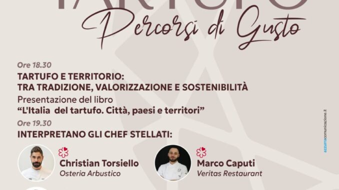 Il convegno avrà inizio alle 18:30 con un’affascinante riflessione su “Tartufo e Territorio: Tradizione, Valorizzazione, Sostenibilità e Risvolti Economici e Turistici”. L’incontro darà voce a istituzioni, esperti, chef e professionisti di settore che approfondiranno come il tartufo sia diventato un vero e proprio motore di sviluppo per il territorio, capace di generare opportunità economiche e attrarre turisti da ogni parte del mondo. A margine dell’incontro, si terrà la presentazione del libro di Gianluca Carrabs, “L’Italia del Tartufo. Città, Paesi e Territori“, una guida che racconta, con passione e dettaglio, il percorso del tartufo attraverso 138 comuni italiani, svelando la straordinaria varietà di questo prodotto simbolo dell’eccellenza gastronomica italiana.