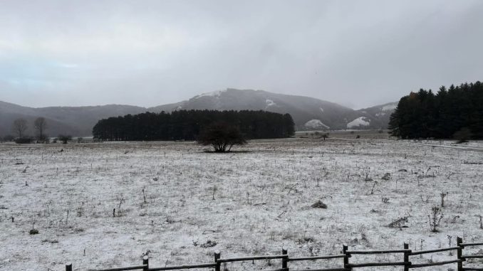 Neve al Lago Laceno: l’inverno arriva in anticipo sull’Alta Irpinia