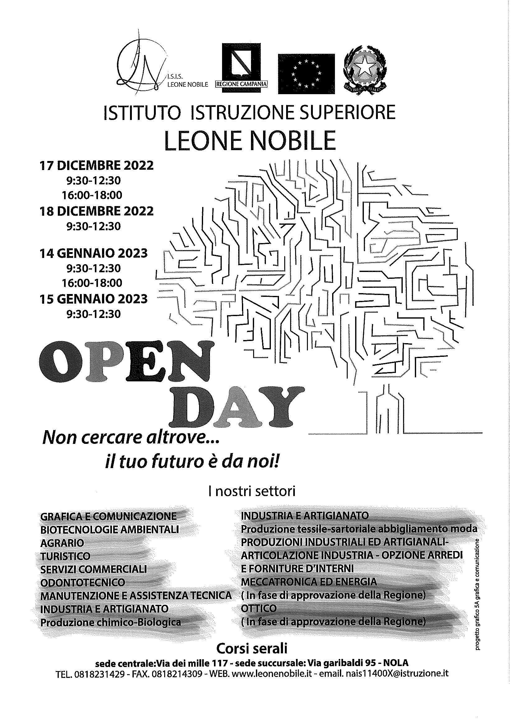 L’istituto Superiore “Ambrogio Leone — Umberto Nobile” di Nola (NA) ha il piacere di invitare genitori ed alunni iscritti alle classi terze (e non solo) delle scuole secondarie di I grado aIl’Open Day che sarà celebrato nei giorni 17 e 18 dicembre 2022.