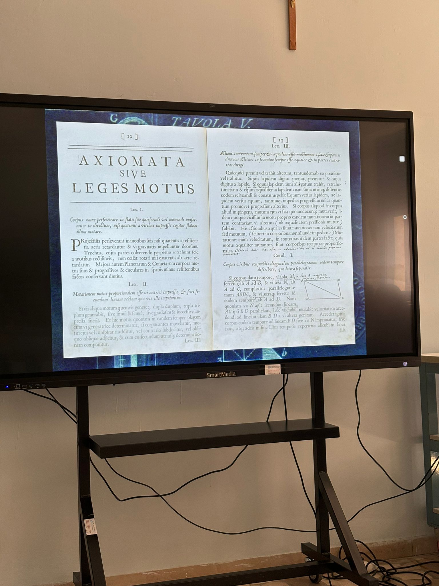 Sono intervenuti due autorevoli docenti dell’Università degli Studi di Napoli “Federico II”, il Prof. Giovanni Ausanio, Fisico della Materia e Coordinatore della Notte Europea dei Ricercatori, ed il Prof. Salvatore Esposito, Storico della Fisica e Relatore. L’uditorio, composto sia da studenti che da insegnanti, è stato letteralmente “conquistato” da dissertazioni che hanno spaziato, in maniera critica, tra la Fisica, la Matematica, la Storia, la Filosofia, le Discipline Classiche… interpretando appieno quell’unitarietà del sapere e quell’interconnessione dialettica tra le discipline, che costituiscono il fondamento e l’identità dell’offerta formativa carducciana.