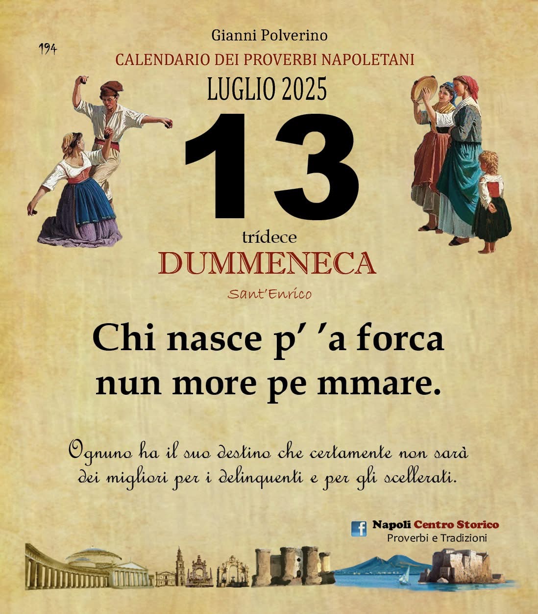 HomeEVIDENZA‘O PRUVERBIO D’ ‘O JUORNO. Domenica 13 luglio 2025