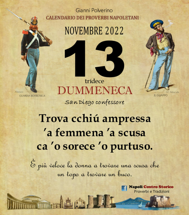 ‘O PRUVERBIO D’ ‘O JUORNO. Domenica 13 novembre 2022