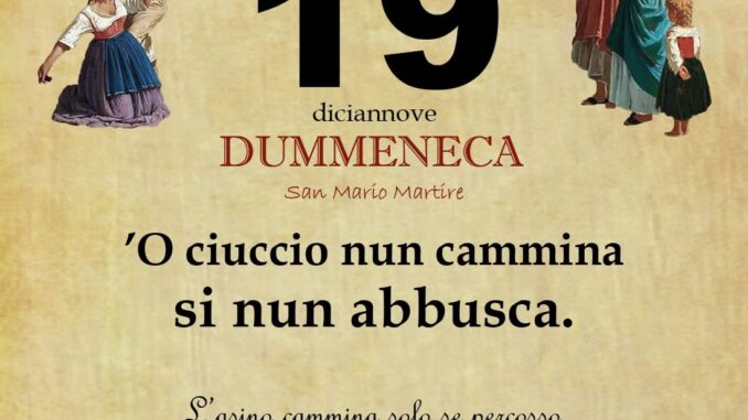 ‘O PRUVERBIO D’ ‘O JUORNO. Domenica 19 gennaio 2025 19/01/2025 binews.it EVIDENZA, Il Proverbio del Giorno 0 di Gianni Polverino ’O ciuccio nun cammina si nun abbusca. L’asino cammina solo se percosso. Con certi personaggi occorrono maniere forti.