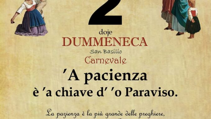 ‘O PRUVERBIO D’ ‘O JUORNO. Domenica 2 marzo 2025 02/03/2025 binews.it EVIDENZA, Il Proverbio del Giorno 0 di Gianni Polverino’A pacienza è ’a chiave d’ ’o Paraviso. La pazienza è la più grande delle preghiere, ed è la chiave del Paradiso.