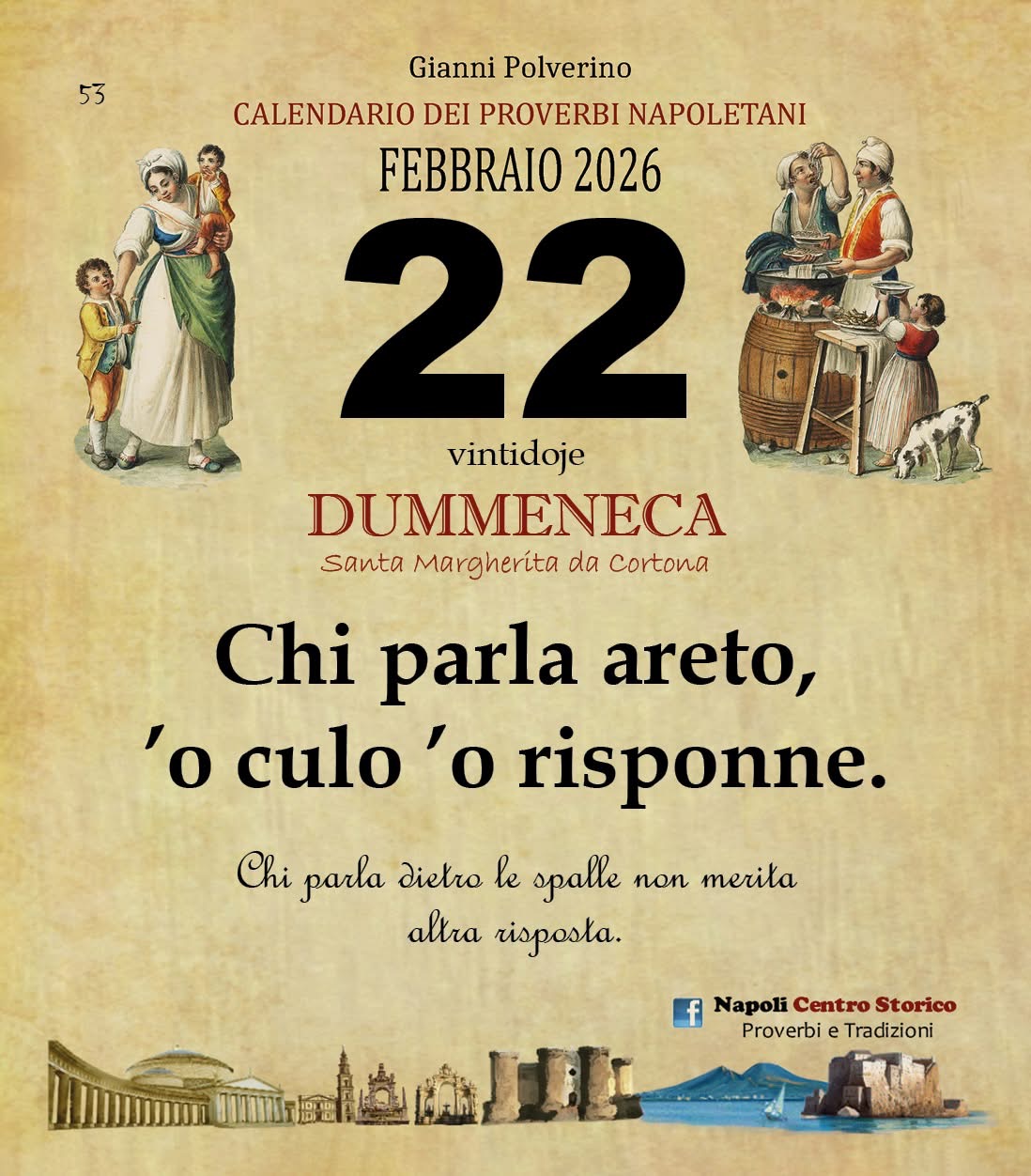 ‘O PRUVERBIO D’ ‘O JUORNO. Domenica 22 febbraio 2026 22/02/2026 binews.it EVIDENZA, IRPINIA 0 di Gianni Polverino Chi parla areto, ’o culo ’o risponne. Chi parla dietro le spalle non merita altra risposta.