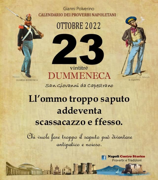 ‘O PRUVERBIO D’ ‘O JUORNO. Domenica 23 ottobre 2022