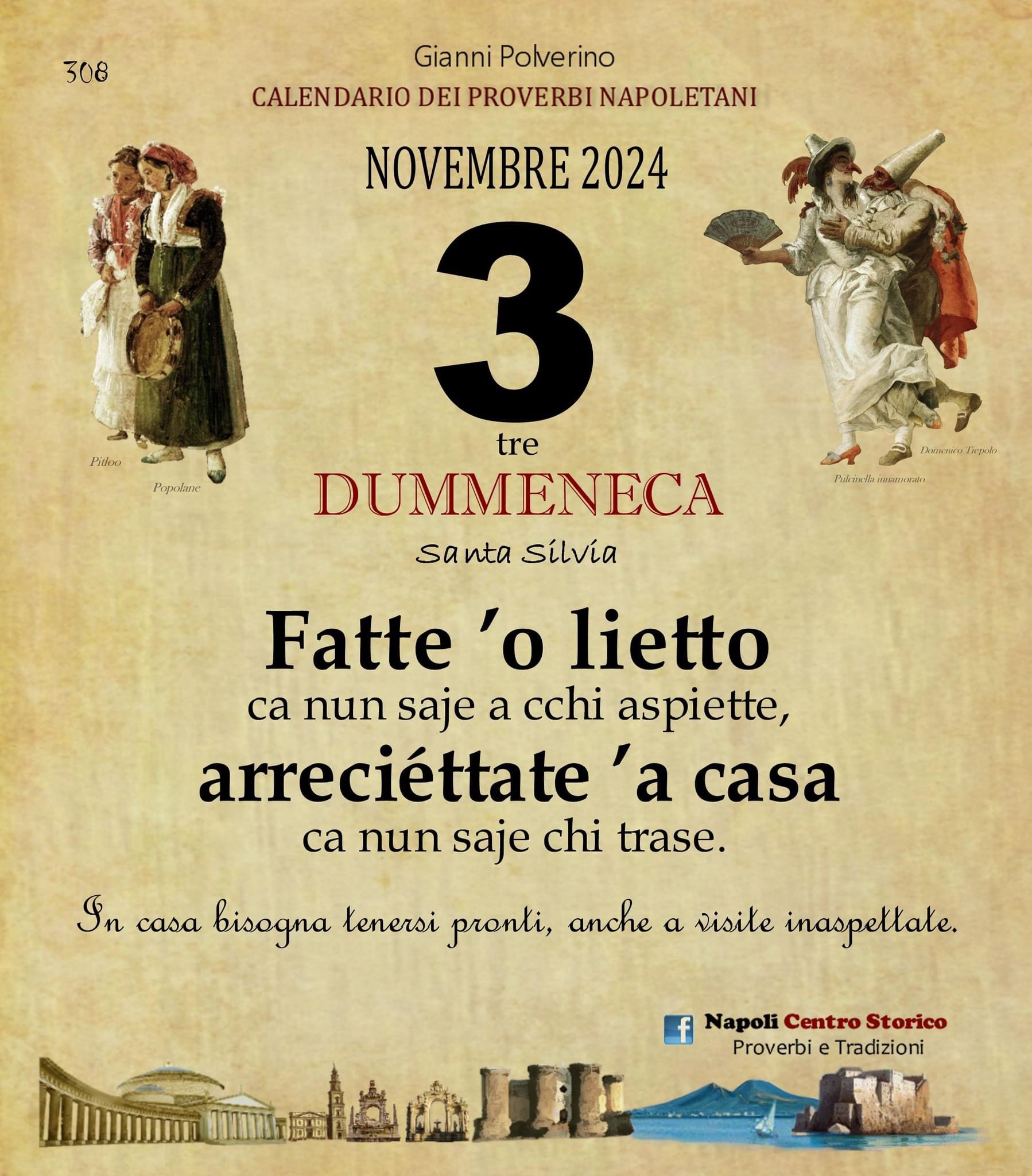 ‘O PRUVERBIO D’ ‘O JUORNO. Domenica 3 novembre 2024