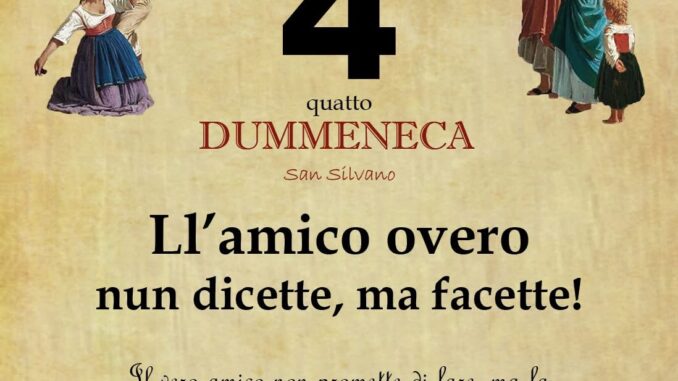 ‘O PRUVERBIO D’ ‘O JUORNO. Domenica 4 maggio 2025 04/05/2025 binews.it EVIDENZA, Il Proverbio del Giorno 0 di Gianni Polverino Ll’amico overo nun dicette, ma facette! Il vero amico non promette di fare, ma fa.