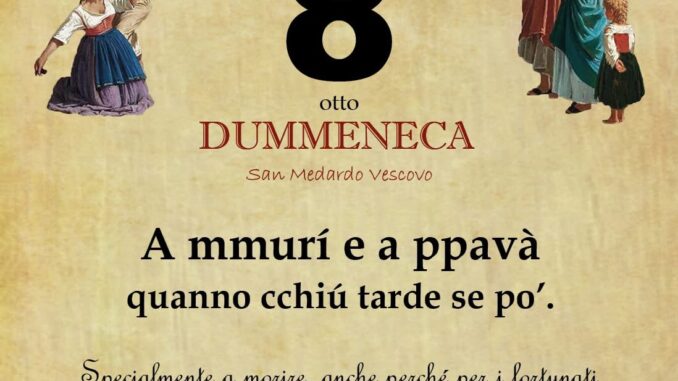 ‘O PRUVERBIO D’ ‘O JUORNO. Domenica 8 giugno 2025 08/06/2025 binews.it EVIDENZA, Il Proverbio del Giorno 0 di Gianni Polverino A mmurí e a ppavà quanno cchiú tarde se po’. Specialmente a morire, anche perché per i fortunati ritardatari non è prevista alcuna mora o penalità.