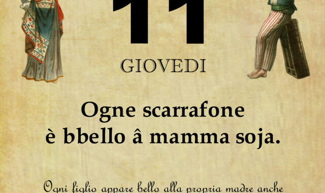 ‘O PRUVERBIO D’ ‘O JUORNO. Giovedì 11 giugno 2020 11/06/2020 binews.it EVIDENZA, Il Proverbio del Giorno 0 di Gianni Polverino Ogne scarrafone è bbello â mamma soja. Ogni figlio appare bello alla propria madre anche se è brutto come uno scarafaggio.
