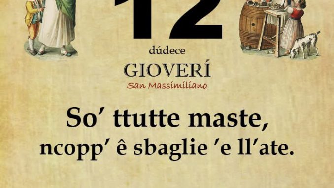 ‘O PRUVERBIO D’ ‘O JUORNO. Giovedì 12 marzo 2026 12/03/2026 binews.it EVIDENZA, Il Proverbio del Giorno 0 di Gianni Polverino So’ ttutte maste, ncopp’ ê sbaglie ’e ll’ate. Sono tutti maestri, sugli errori degli altri.