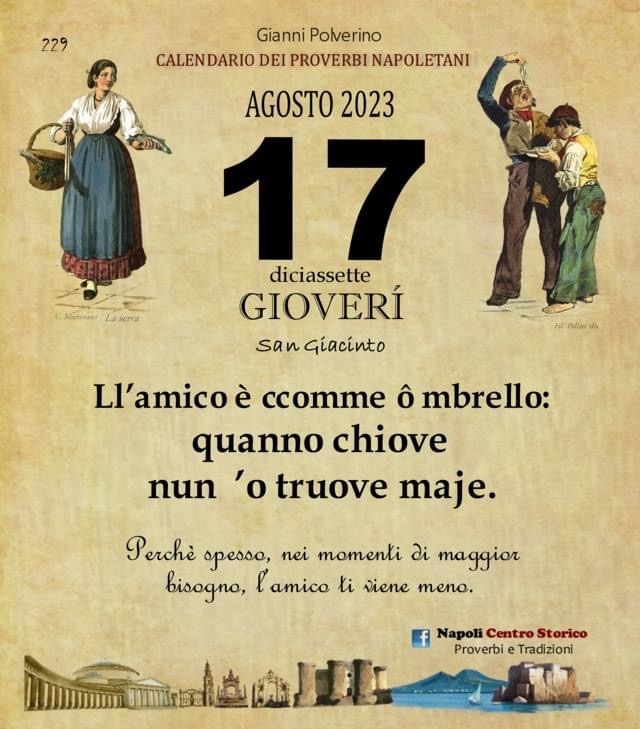 ‘O PRUVERBIO D’ ‘O JUORNO. Giovedì 17 agosto 2023