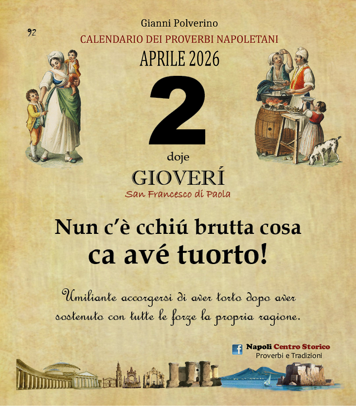 HomeEVIDENZA‘O PRUVERBIO D’ ‘O JUORNO. Giovedì 2 aprile 2026