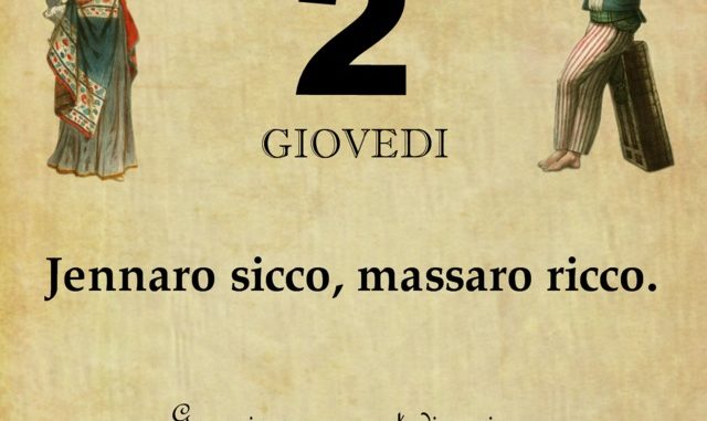 ‘O PRUVERBIO D’ ‘O JUORNO. Giovedì 2 gennaio 2020 02/01/2020 binews.it EVIDENZA, Il Proverbio del Giorno 0 di Gianni Polverino Jennaro sicco, massaro ricco. Gennaio secco, contadino ricco. Proverbio della tradizione contadina per indicare che il mese di gennaio senza pioggia è sinonimo di buoni raccolti di grano di ottima qualità.