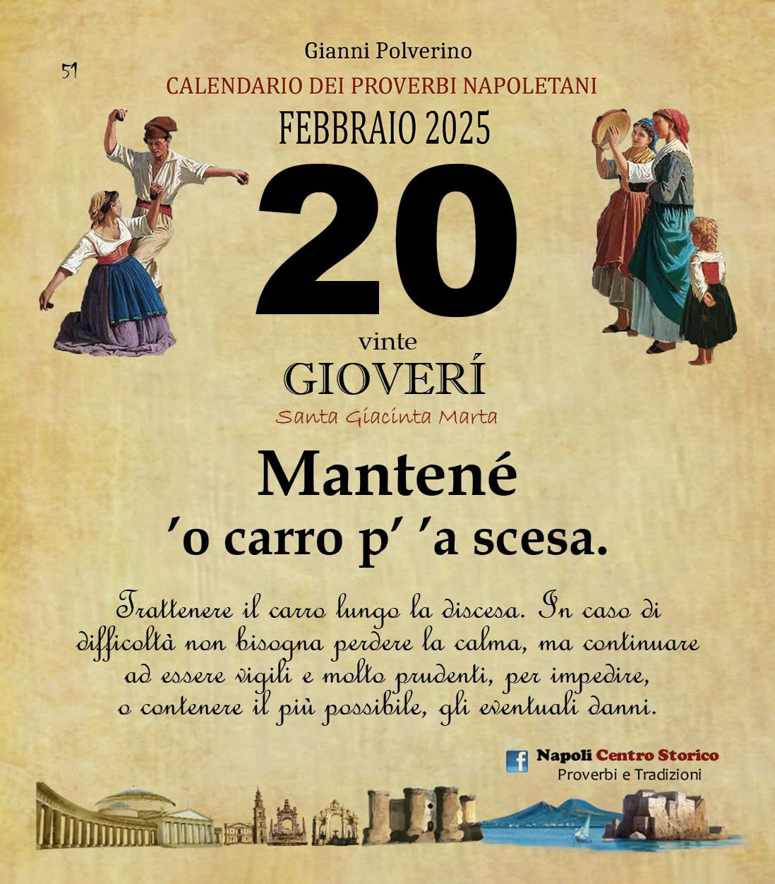 ‘O PRUVERBIO D’ ‘O JUORNO. Giovedì 20 febbraio 2025