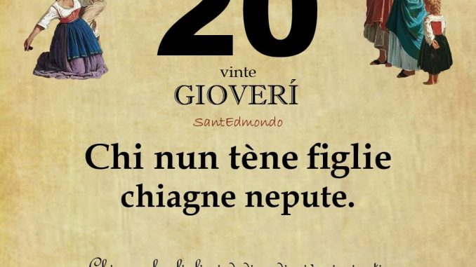 ‘O PRUVERBIO D’ ‘O JUORNO. Giovedì 20 novembre 2025 20/11/2025 binews.it EVIDENZA, Il Proverbio del Giorno 0 di Gianni PolverinoChi nun tène figlie chiagne nepute. Chi non ha figli si dedica di più ai nipoti.