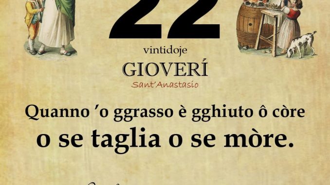 ‘O PRUVERBIO D’ ‘O JUORNO. Giovedì 22 gennaio 2026