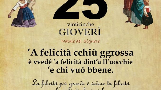 ‘O PRUVERBIO D’ ‘O JUORNO. Giovedì 25 dicembre 2025 25/12/2025 binews.it EVIDENZA, Il Proverbio del Giorno 0 di Gianni Polverino’A felicità cchiù ggrossa è vvedé ’a felicità dint’a ll’uocchie ’e chi vuó bbene. La felicità più grande è vedere la felicità negli occhi di chi vuoi bene.”