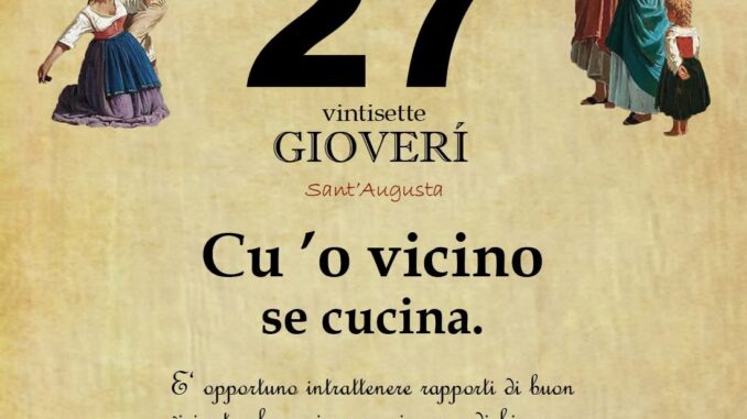 ‘O PRUVERBIO D’ ‘O JUORNO. Giovedì 27 marzo 2025 27/03/2025 binews.it EVIDENZA, Il Proverbio del Giorno 0 di Gianni Polverino Cu ’o vicino se cucina. E‘ opportuno intrattenere rapporti di buon vicinato che assicurano, in caso di bisogno, un reciproco aiuto.
