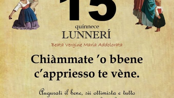 ‘O PRUVERBIO D’ ‘O JUORNO. Lunedì 15 settembre 2025 15/09/2025 binews.it EVIDENZA, Il Proverbio del Giorno 0 di Gianni PolverinoChiàmmate ’o bbene c’appriesso te vène. Augurati il bene, sii ottimista e tutto andrà sempre per il meglio.