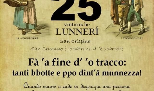 ‘O PRUVERBIO D’ ‘O JUORNO. Lunedì 25 ottobre 2021