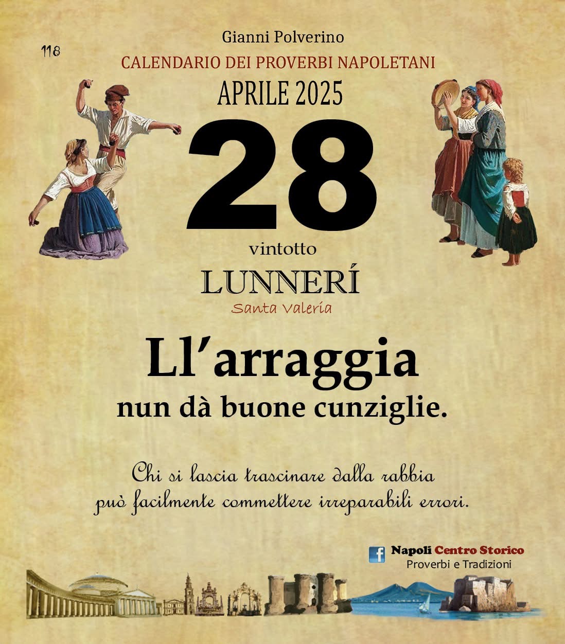 ‘O PRUVERBIO D’ ‘O JUORNO. Lunedì 28 aprile 2025