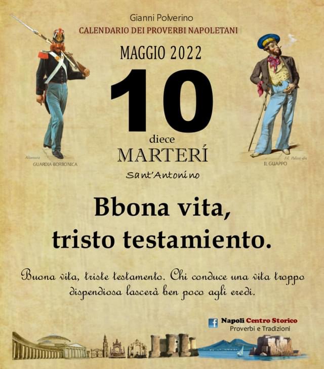 ‘O PRUVERBIO D’ ‘O JUORNO. Martedì 10 maggio 2022