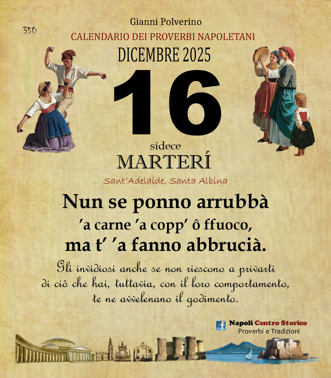 ‘O PRUVERBIO D’ ‘O JUORNO. Martedì 16 dicebre 2025