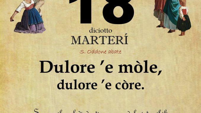 O PRUVERBIO D’ ‘O JUORNO. Martedì 18 novembre 2025 18/11/2025 binews.it EVIDENZA, Il Proverbio del Giorno 0 di Gianni PolverinoDulore ’e mòle, dulore ’e còre.Spesso il mal di denti procura dolori terribili quasi come un attacco.