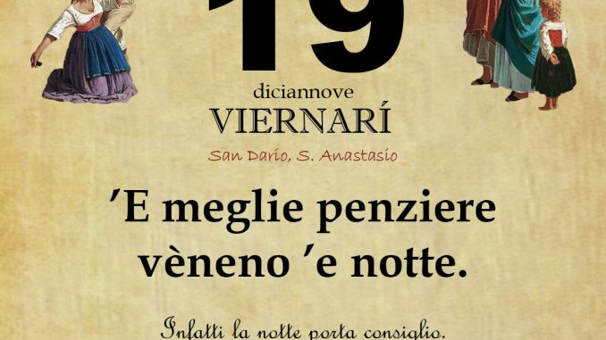‘O PRUVERBIO D’ ‘O JUORNO. Martedì 23 dicembre 2025 23/12/2025 binews.it EVIDENZA, Il Proverbio del Giorno 0 di Gianni Polverino’E meglie penziere vèneno ’e notte.Infatti la notte porta consiglio.