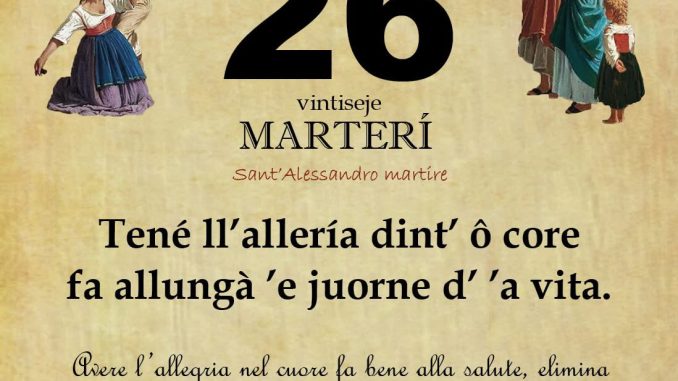 ‘O PRUVERBIO D’ ‘O JUORNO. Martedì 26 agosto 2025