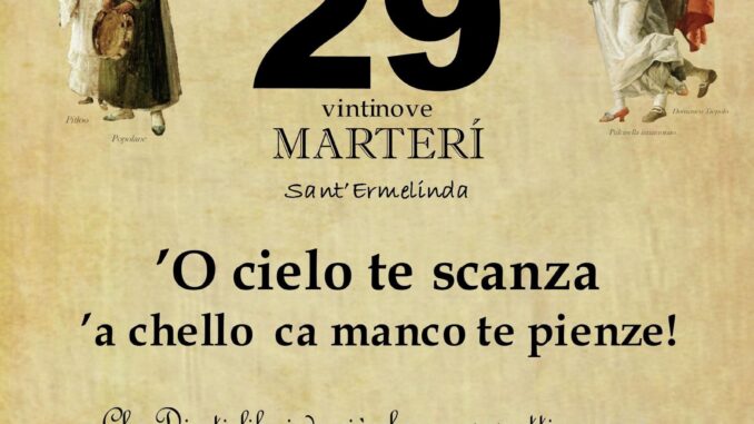 ‘O PRUVERBIO D’ ‘O JUORNO. Martedì 29 ottobre 2024 29/10/2024 binews.it EVIDENZA, Il Proverbio del Giorno 0 di Gianni Polverino ’O cielo te scanza ’a chello ca manco te pienze! Che Dio ti liberi da ciò che non sospetti neppure, possa accaderti.