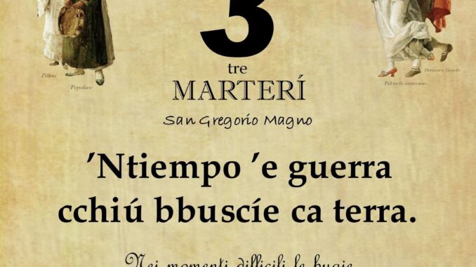 ‘O PRUVERBIO D’ ‘O JUORNO. Martedì 3 settembre 2024 03/09/2024 binews.it EVIDENZA, Il Proverbio del Giorno 0 di Gianni Polverino ’Ntiempo ’e guerra cchiú bbuscíe ca terra. Nei momenti difficili le bugie sono le migliori armi di difesa.