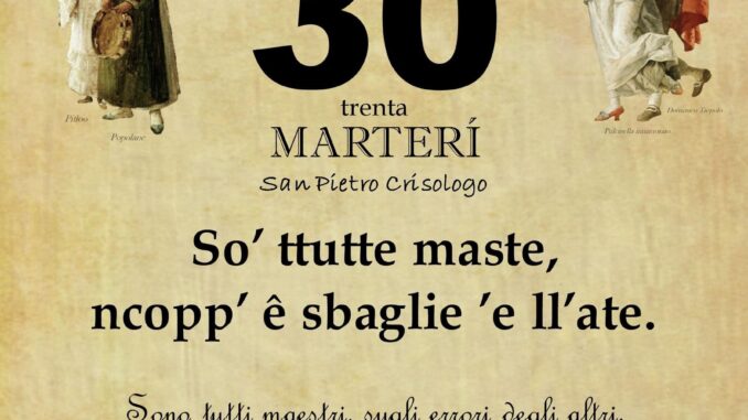 ‘O PRUVERBIO D’ ‘O JUORNO. Martedì 30 luglio 2024 30/07/2024 binews.it EVIDENZA, Il Proverbio del Giorno 0 di Gianni Polverino So’ ttutte maste, ncopp’ ê sbaglie ’e ll’ate. Sono tutti maestri, sugli errori degli altri.