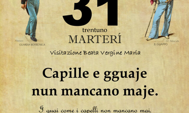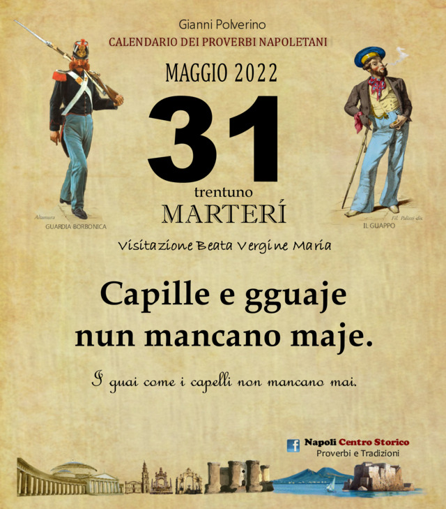 ‘O PRUVERBIO D’ ‘O JUORNO. Martedì 31maggio 2022 31/05/2022 binews.it EVIDENZA, Il Proverbio del Giorno 0 di Gianni PolverinoCapille e gguaje nun mancano maje.I guai come i capelli non mancano mai.