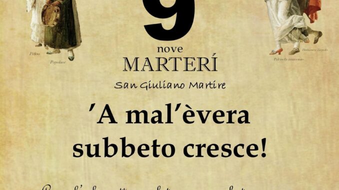 ‘O PRUVERBIO D’ ‘O JUORNO. Martedì 9 gennaio 2024 09/01/2024 binews.it EVIDENZA, Il Proverbio del Giorno 0 di Gianni Polverino ’A mal’èvera subbeto cresce! Come l’erba cattiva subito cresce e infesta i campi, così il male e il maligno dilaga nel mondo.