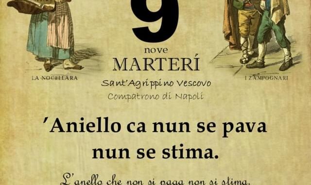 ‘O PRUVERBIO D’ ‘O JUORNO. Martedì 9 novembre 2021 09/11/2021 binews.it EVIDENZA, Il Proverbio del Giorno 0 di Gianni Polverino ’Aniello ca nun se pava nun se stima. L’anello che non si paga non si stima. In genere ciò che si riceve in dono non si apprezza.